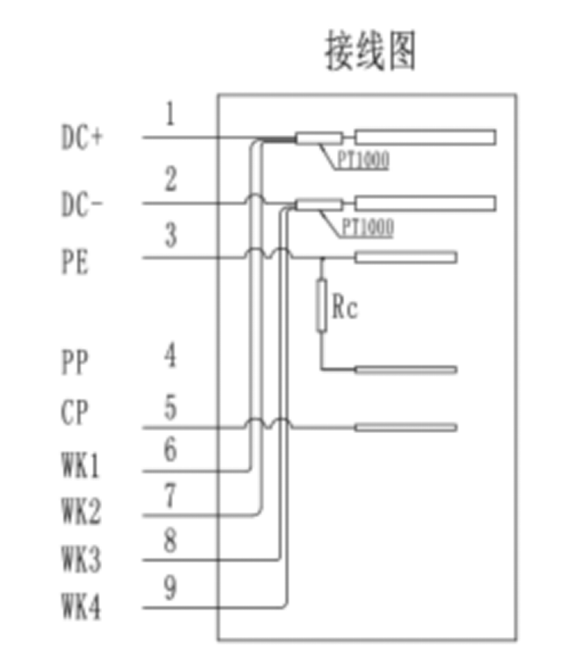 充電槍內(nèi)部的接線關(guān)系,如下圖所示: